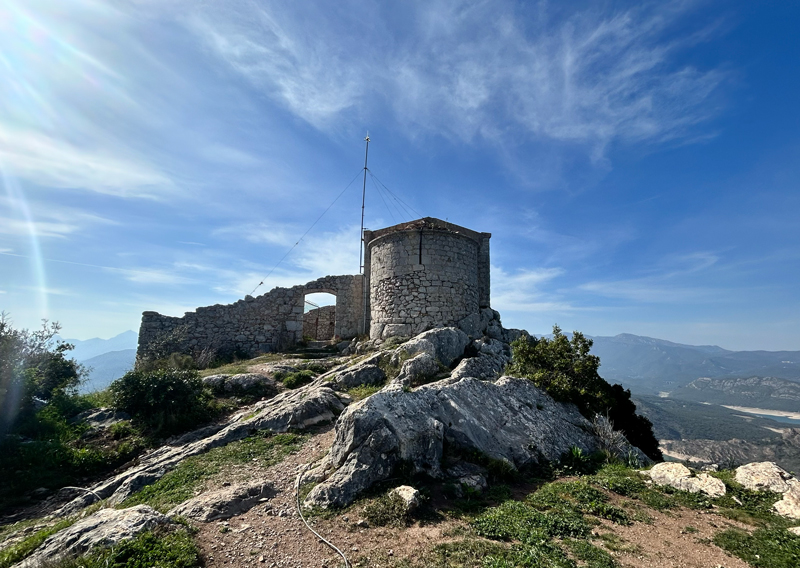 Passareu pel Santuari de la Salut entre pistes, corriols i tarteres. L’esforç tindrà recompensa al cim (1r avituallament – líquid) on gaudireu d’unes vistes panoràmiques espectaculars al Pantà de Boadella i els Pirineus.